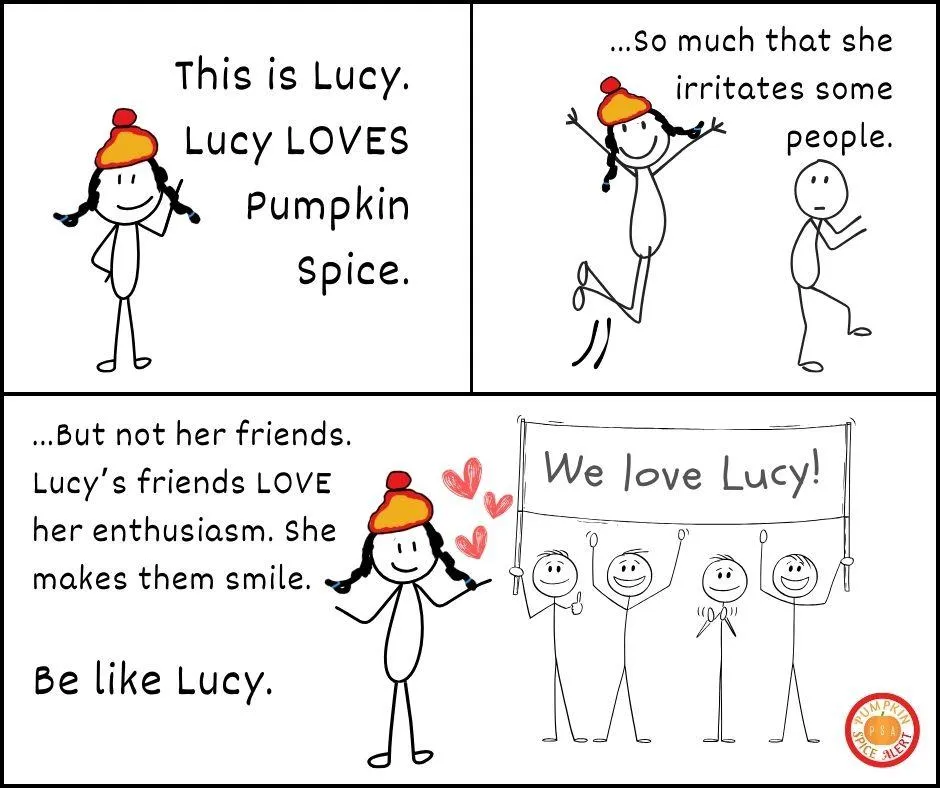 Lucy believes (and we agree) that you don't need other people's permission to pursue your priorities... because God gave you that permission when you were born. If living the dream means (or includes) loving Pumpkin Spice, then go for it.